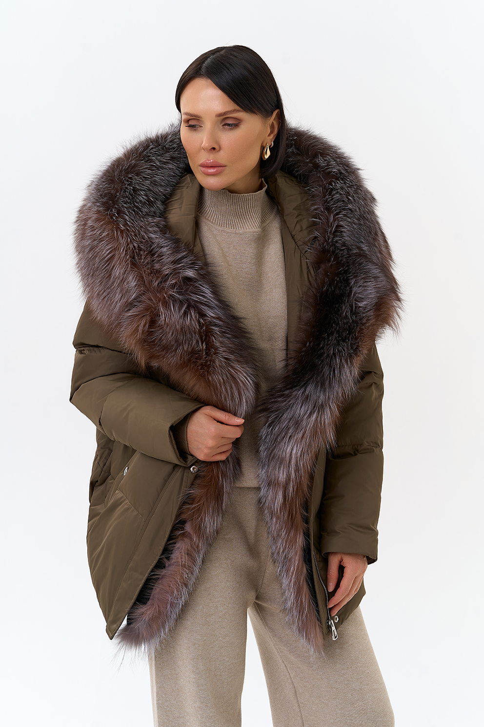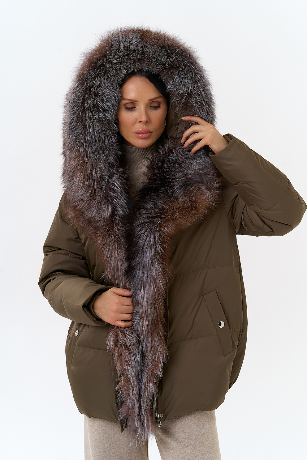 Крой воротника - капюшон, отделка блюфрост