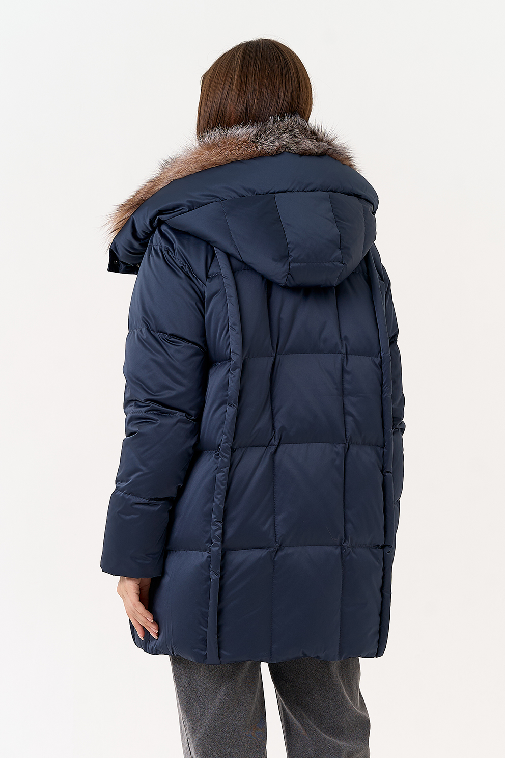 Крой воротника - капюшон, отделка блюфрост