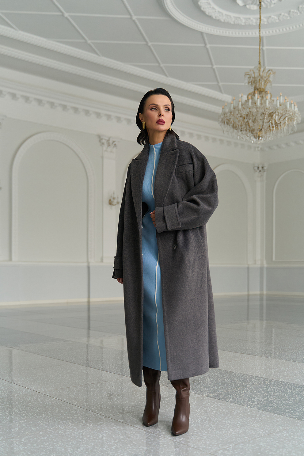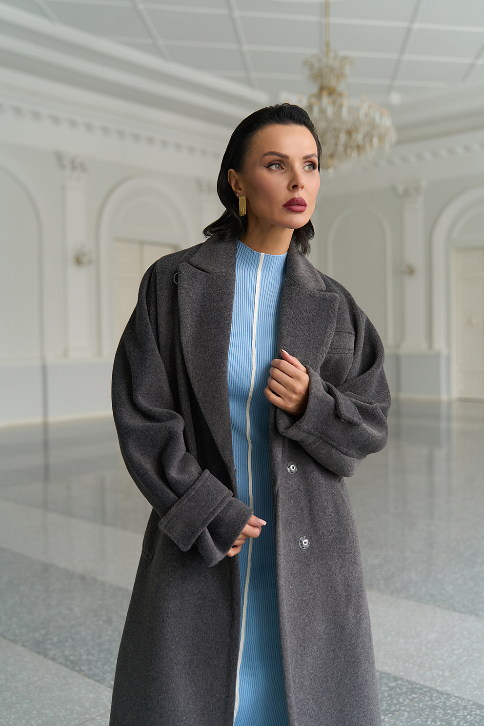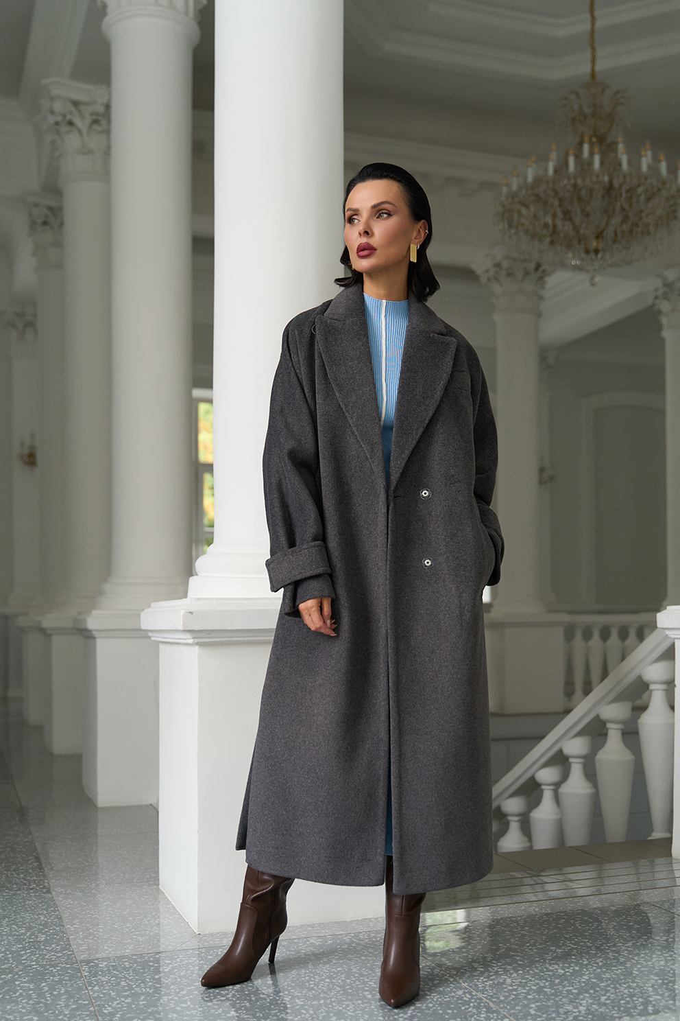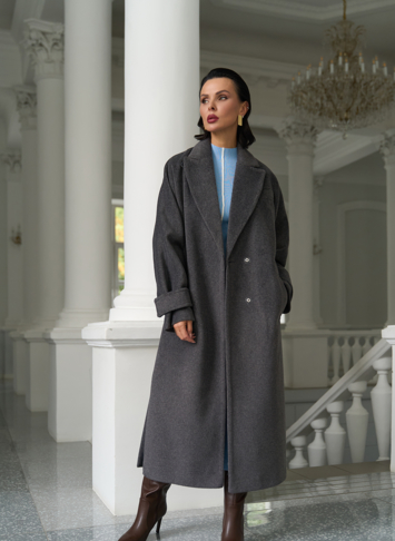 Силуэт - прямой Цвет - темно-серый Длина - 120 см Вид полотна - тканое Состав полотна - шерсть 80% п/э 20% Вид застежки - кнопки Крой воротника - английский воротник Фасон рукава - цельнокроенный, длинный Фасон кармана - прорезной Пояс |