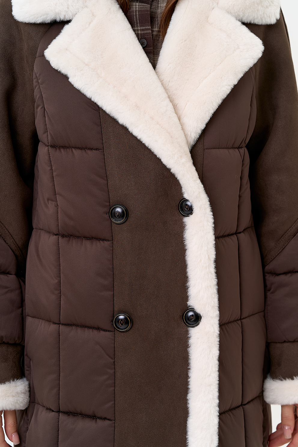 Крой воротника - капюшон, отделка эко мех