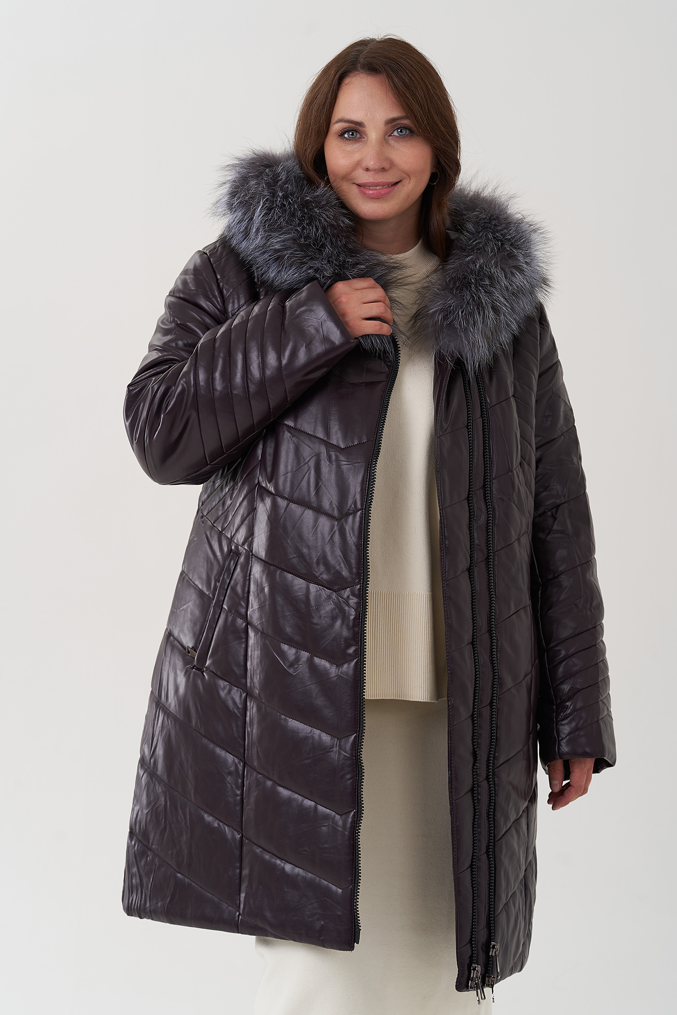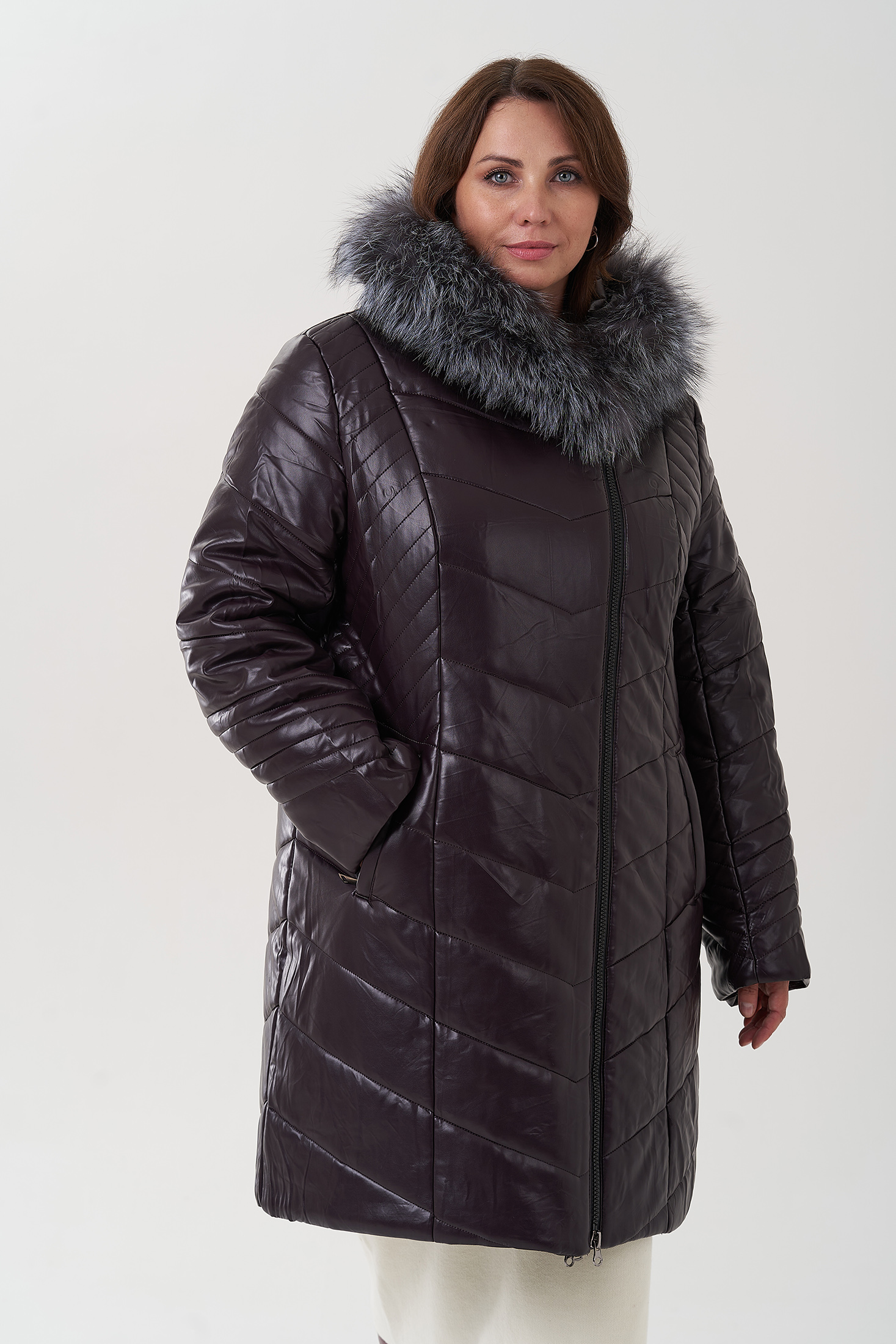 Пуховик из эко кожи