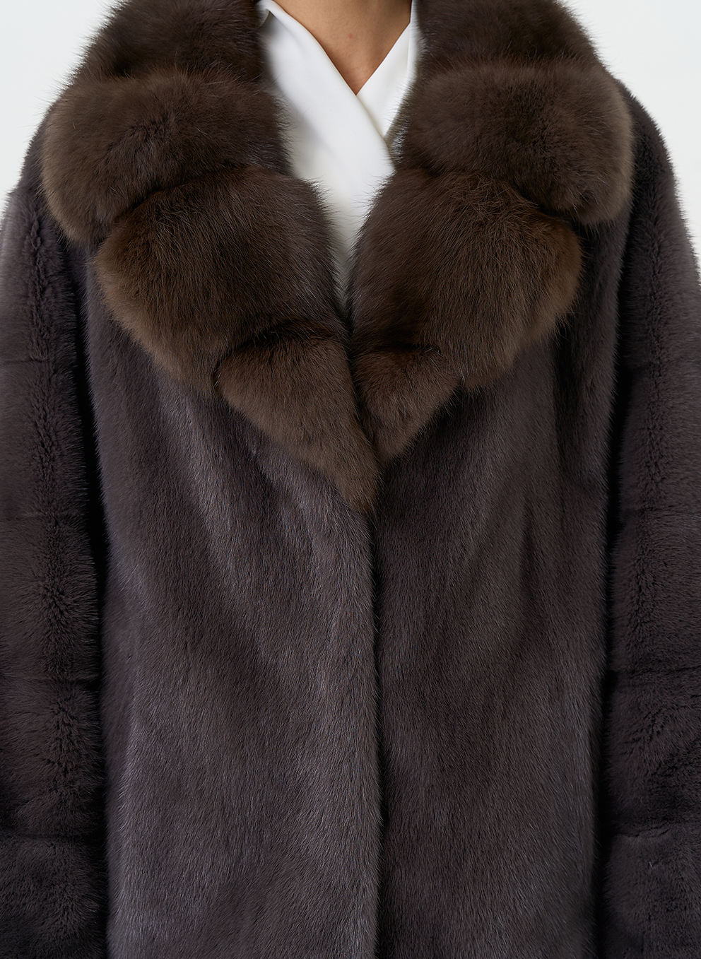 Тип ворота - английский воротник, отделка куница
